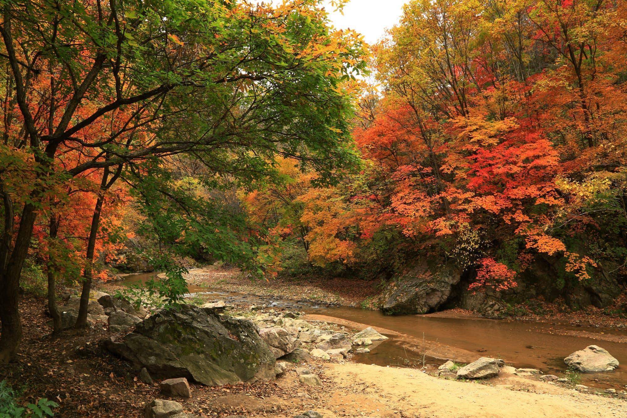 筐子沟原生态风景区原始幽静、水流清澈、空气清新,森林覆盖率高达95%。一条河贯穿景区,形成天然的龙盘式游览景观带。昔日的东北抗联游击区,此刻秋韵正浓,红叶如火、黄叶似金。